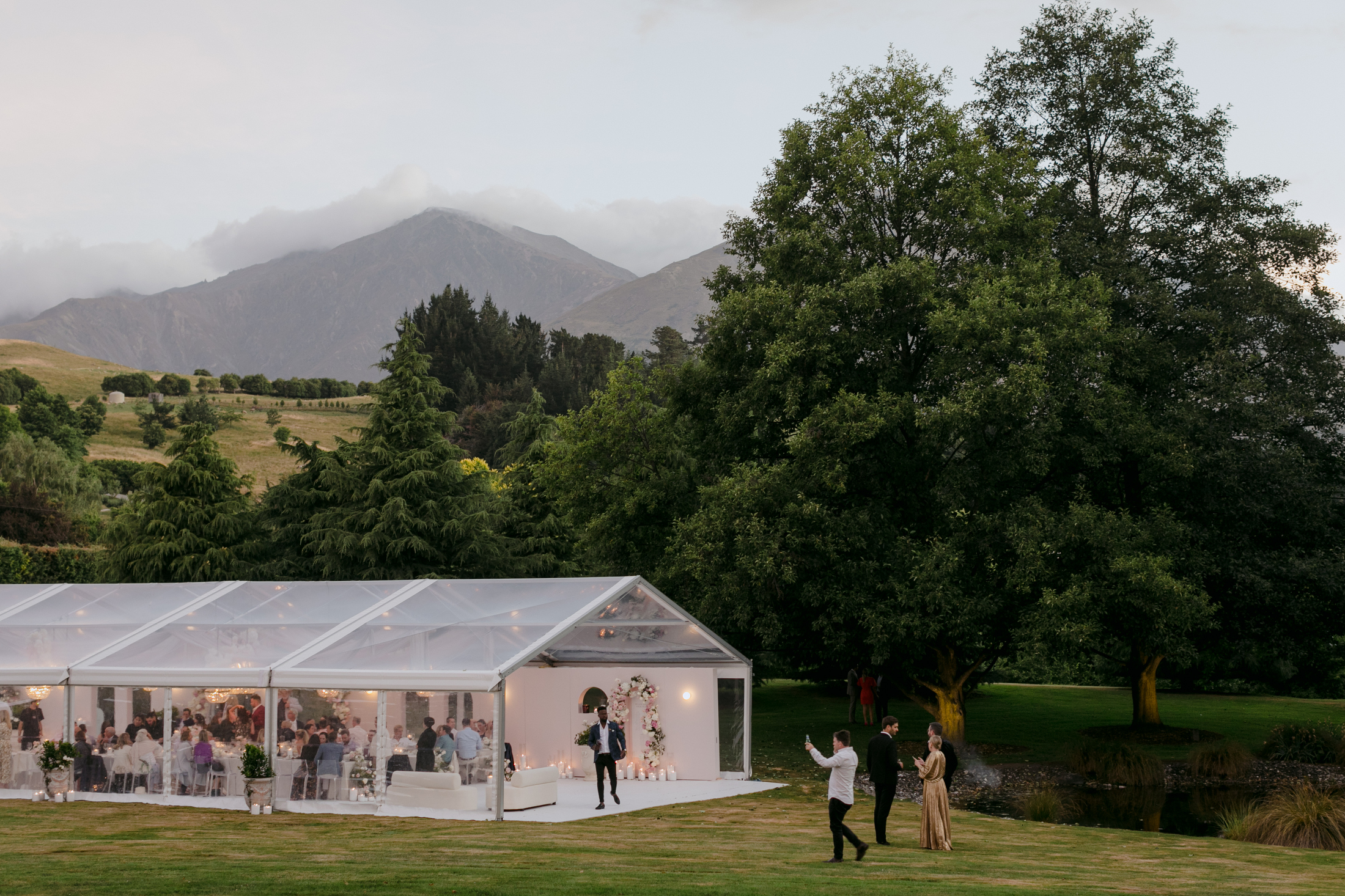 The Pavillion is wonderfully flexible, a blank slate for couples can make completely their own. What I love most is how Lake Hayes frames the entire day, especially at sunset when the mountains reflect on the still water. Those quiet moments by the lake always end up being some of the most memorable photographs.